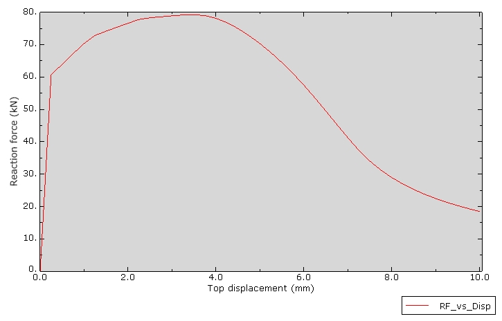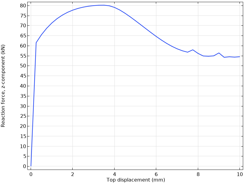 The reaction force at the top face traces the characteristic curve of a necking bar:
