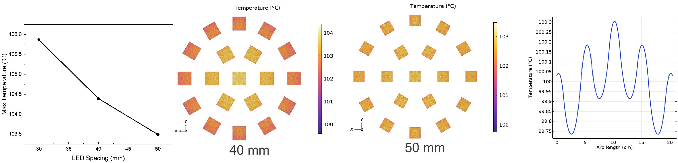 Using the nominal model as a reference, we increased the spacing between LED chips.