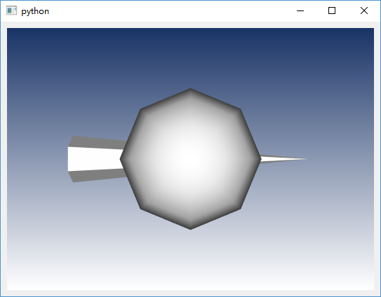 fromPyQt5.QtWidgetsimportQApplication,QMainWindowimportsysimportvtkfromPyQt5importQtCore,QtGui,QtWidgetsfromvtk.qt.QVTKRenderWindowInteractorimportQVTKRenderWindowInteractorclassmyMainWindow(QtWidgets.QMainWindow):def__init__(self,parent=None):QtWidgets.QMainWindow.__init__(self,parent)self.frame=QtWidgets.QFrame()self.vl=QtWidgets.QVBoxLayout()self.vtkWidget=QVTKRenderWindowInteractor(self.frame)self.vl.addWidget(self.vtkWidget)self.ren=vtk.vtkRenderer()self.vtkWidget.GetRenderWindow().AddRenderer(self.ren)self.iren=self.vtkWidget.GetRenderWindow().GetInteractor()# Create sourcesource=vtk.vtkConeSource()source.SetCenter(0,0,0)source.SetRadius(0.1)source1=vtk.vtkSphereSource()source1.SetCenter(0,0,0)source1.SetRadius(0.3)# Create a mappermapper=vtk.vtkPolyDataMapper()mapper.SetInputConnection(source.GetOutputPort())mapper1=vtk.vtkPolyDataMapper()mapper1.SetInputConnection(source1.GetOutputPort())# Create an actoractor=vtk.vtkActor()actor.SetMapper(mapper)actor1=vtk.vtkActor()actor1.SetMapper(mapper1)self.ren.AddActor(actor)self.ren.AddActor(actor1)self.ren.ResetCamera()self.frame.setLayout(self.vl)self.setCentralWidget(self.frame)self.show()self.iren.Initialize()if__name__=="__main__":app=QApplication(sys.argv)window=myMainWindow()sys.exit(app.exec_())